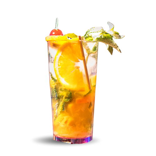 Ron, limón, fruta, azúcar, hielo Frutas disponibles: Durazno, frutilla, naranja